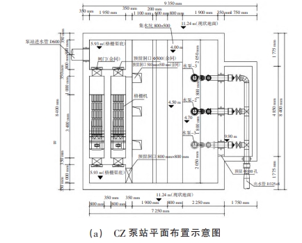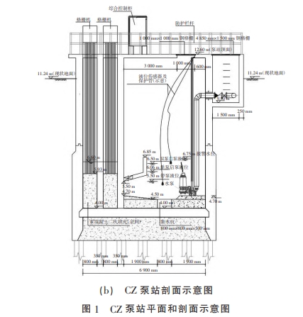 CZ 泵站位于河涌边,原属于潮州某污水处理厂的污水泵站,因污水处理厂周边存在外江堤防、桥梁等因素,无法采用传统重力流进污水厂,因此采用污水泵站提升后用压力管过外江堤防和桥梁桥墩群。CZ 泵站进水管管径 D600,管底标高 6.63 m,地面标高 11.24 m,埋深约 4.61 m。