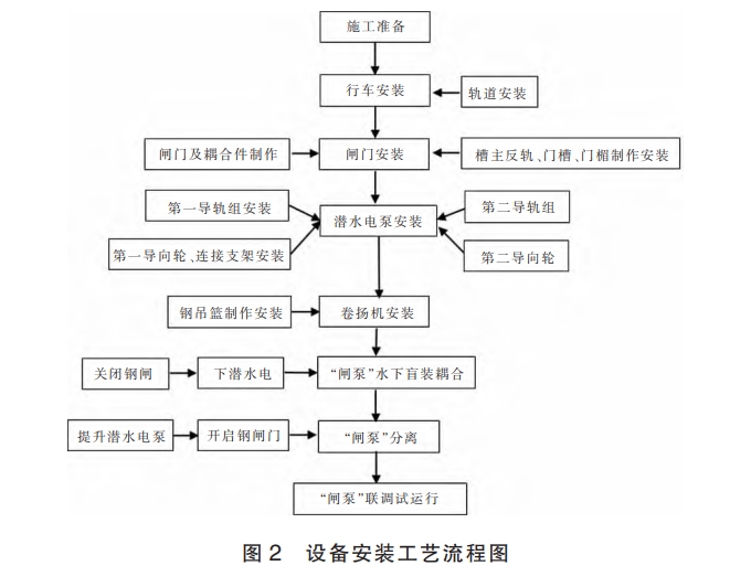 项目完成土建工程施工后,开始泵站金属结构和机电设备的安装工作。设备安装工艺流程见图 2: