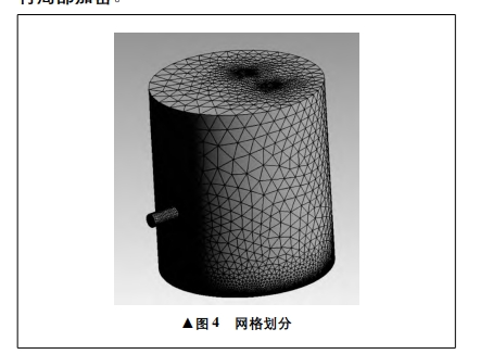 一体化预制泵站内的流体为连续流动的流体,直接求解泵站内连续流动的流体难度很大。因此,在使用计算流体动力学软件对模型进行仿真之前,需要借助网格划分将连续流动的流体离散化,并求解离散化方程组,这样可以大大降低数值计算难度,并提高求解精度。在 ANSYS 软件中对整个流体进行四面体非结构网格划分,如图4所示,并对泵出水管道叶轮区域进行局部加密,