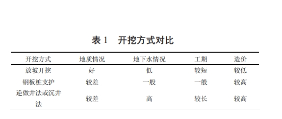 泵坑开挖与回填问题2.5由于一体化污水泵站是深埋地下,因此泵坑的开挖与回填尤其重要,在开挖时应密切关注基坑的安全。泵坑底部必须是干爽的,不允许有水,否则应采取适当的降水措施,保证干槽施工,地下水位应降至槽底最低点以下 0.3~0.5 m。同时应采取合适的基坑围护方式,避免泵坑坍塌。当地质条件比较好,周边环境允许的情况下,首选是放坡开挖;然而当遇到地质情况较差时,场地无法满足大范围的开挖和深挖,地下水位不高,这时候可通过打钢板桩围护开挖;但如果遇到地质情况较差,地下水位又比较高的情况,通常是采取逆做井法或沉井等方法施工,开挖方式对比如表1所示。