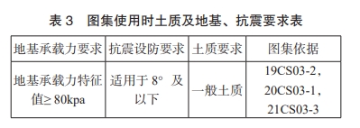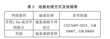 根据筒径划分,地基处理的方式见表2,图集使用时的地基承载力要求、土质状况和抗震设防要求见表3。