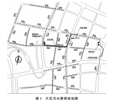 案例项目位于泉州市,为污水管网完善项目。根据污水管网规划,该片区污水无法通过重力管道排放于现状1号泵站,需经过污水泵站提升后排人市政重力管道,再汇人现状1号泵站。由于该片区较低点可用建设用地紧张,无法建设传统污水泵站,方案规划时考虑采用占地面积较小的一体化泵站。污水管网规划如图1所示。