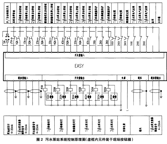 图2是以EASY构成的小型污水提升泵站电气控制系统原理图。